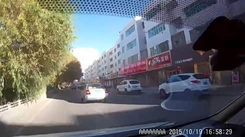 实拍 女司机狂飙遇到坦克掉头 被撞惨