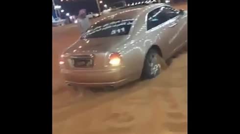 太任性 土豪开劳斯莱斯去冲沙 陷住了
