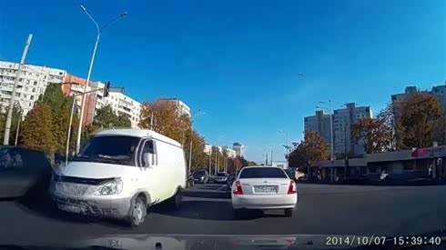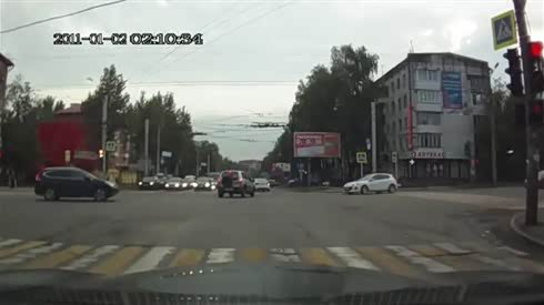 路口惊险事故 白色轿车失控酿猛烈对撞