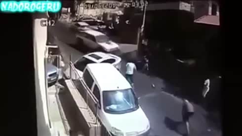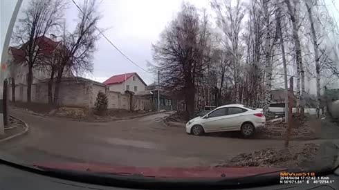使劲踩也没用 小轿车急刹躲避失控撞车