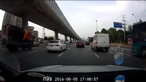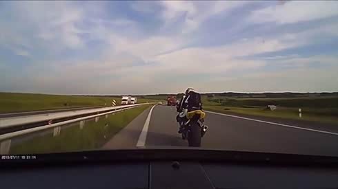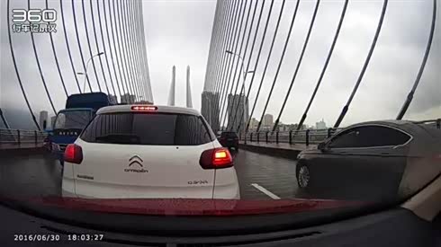 急刹已经来不及 倒霉蛋高速路疯狂飙车