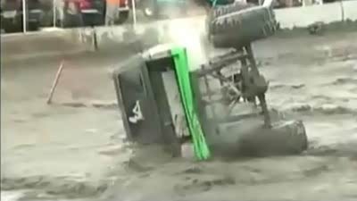惊心动魄!强悍的丰田陆巡勇闯波涛汹涌的洪水