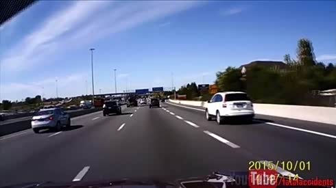 实拍 奔驰奥迪高架桥飙车失控 撞毁人玩完