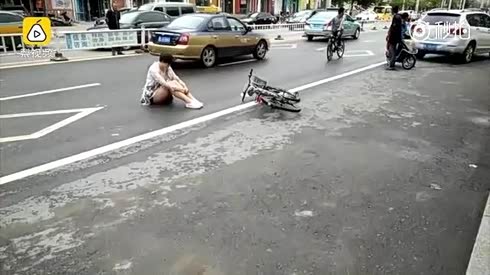 女子骑车遭刮碰 坐湿地半小时讨说法