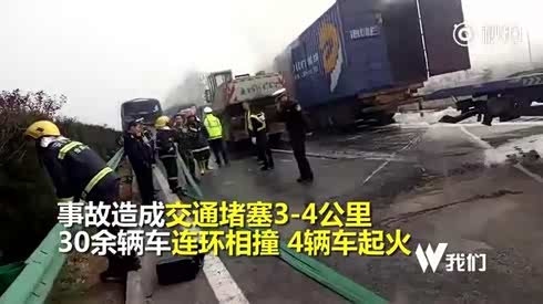 高速惨烈车祸 大雾中30多辆车连环追尾