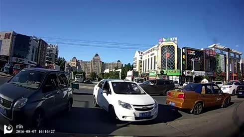 手法娴熟 摄像车过路口被骑车人碰瓷