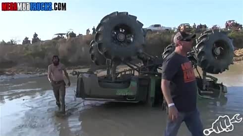 轮子太大也不成 大脚皮卡泥水狂飙翻车