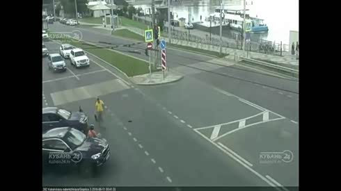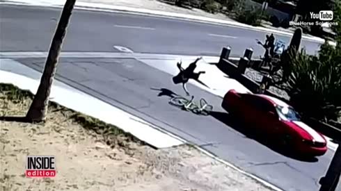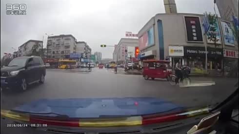 开车坚决不能分神 实拍轿车撞倒骑车人
