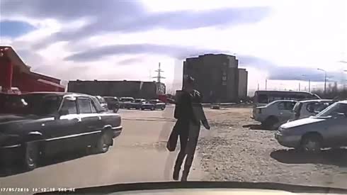 惨被撞飞 小伙骑自行车乱穿马路被撞
