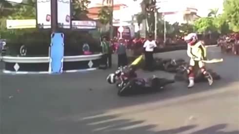 摔得太惨 大排量摩托车狂甩警车酿悲剧
