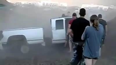 断成两截 雪佛兰皮卡玩飞跃钻进土坡