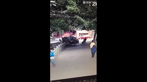 路人吓傻了 轿车冲上行人道压爬俩行人
