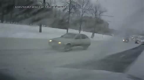 意外难料 实拍SUV打滑失控惨撞逆行车