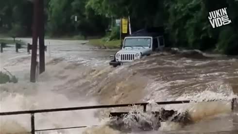 凶多吉少 实拍Jeep牧马人被洪水冲走