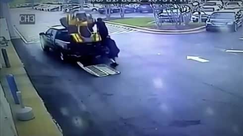 擎天柱变形 看自卸卡车被桥洞卡上天