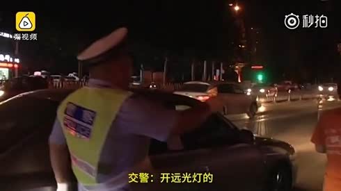 不知道错了 司机开远光灯被罚怼交警