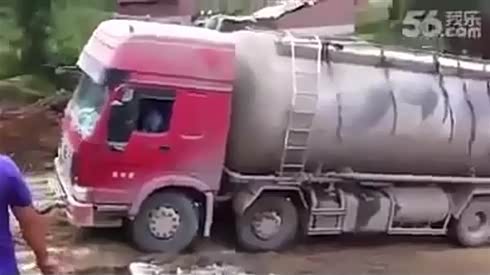 相当危险!实拍卡车失控从山坡上滚落