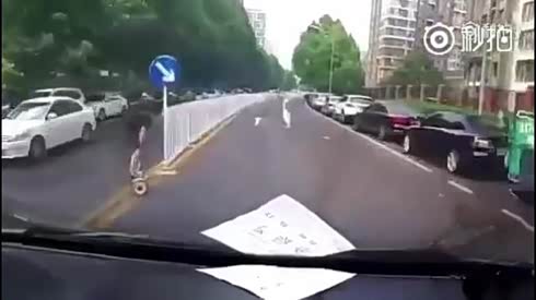 血泪教训 男子踩平衡车上路被汽车撞飞