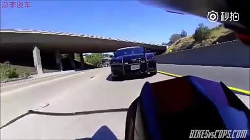 实在追不上 摩托车被警车鸣笛起身就跑