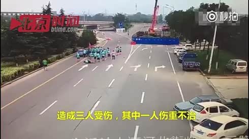 晨跑团马路暴走 不幸被女司机撞飞碾压
