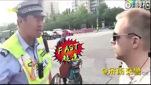 美国人闯红灯 被中国交警用英语教育!