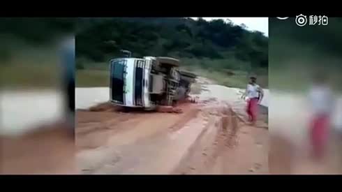 司机神反应 货车侧翻司机秒速跳车求生