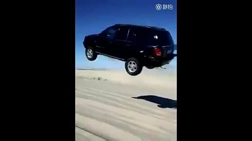 起飞未遂 越野车沙漠飞跃扎了个猛子