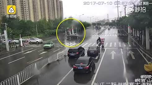 瞬间吓尿了!小轿车失控上演死亡翻滚