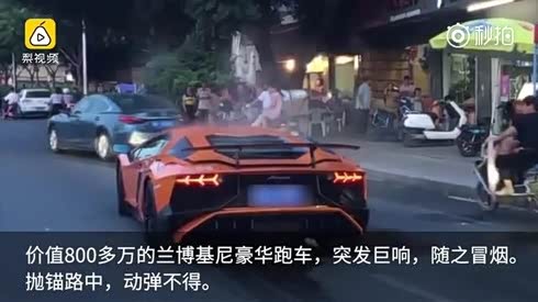 烧的都是钱 兰博基尼超跑街头自燃冒烟