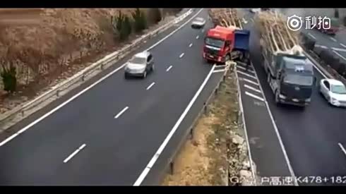 险象环生 大货车满载高速岔路口倒车