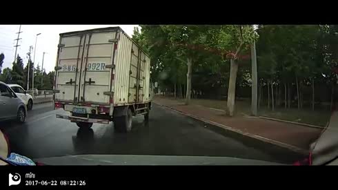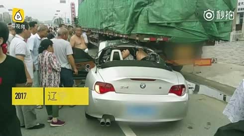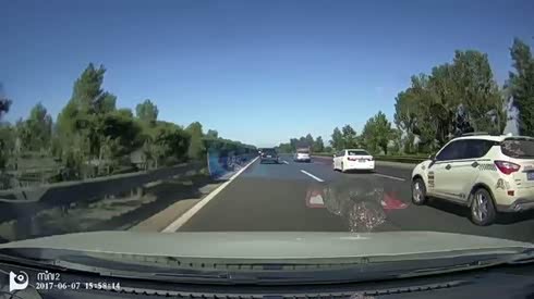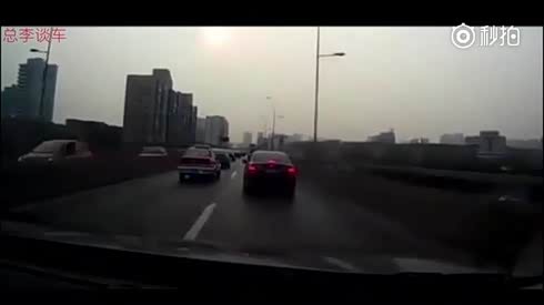 招谁惹谁了 轿车被货车追尾旋转撞护栏