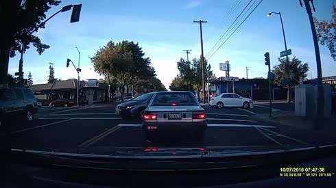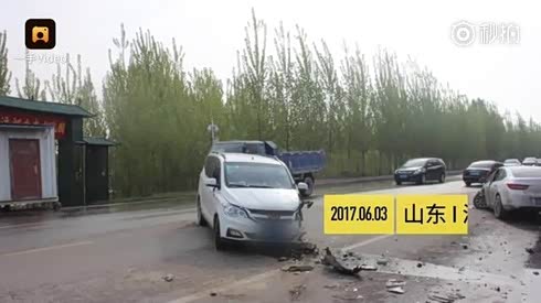 前车居然吓一跳 转弯车与直行车相撞