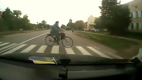 切记路口慢行 路人骑自行车斑马线被撞