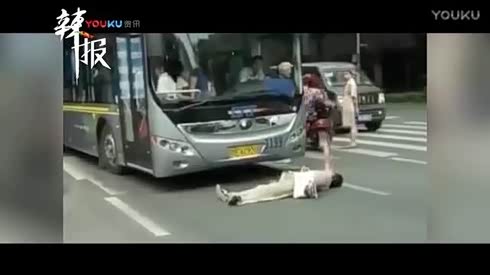男子碰瓷公交车 为捡20元钱被民警拖出