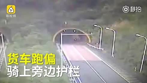 司机涉嫌疲驾 货车跑偏隧道口骑护栏