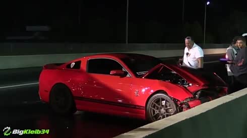 惋惜 Mustang Shelby GT500直线撞护栏