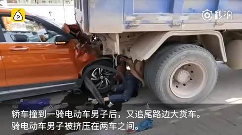 惨不忍睹 男子驾车将电动车撞进货车底