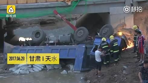 透心凉 运冰车爆胎侧翻隧道变成冰窖