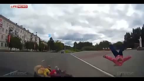 真让人揪心 实拍疾驰汽车撞飞婴儿车
