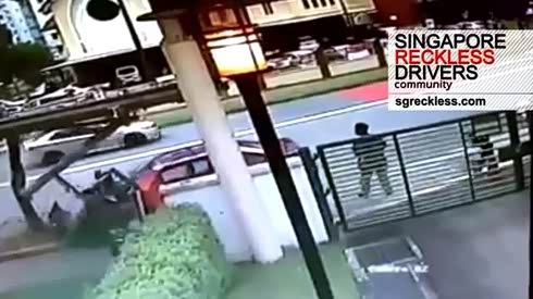 路人很淡定 轿车冲向路旁吓坏小孩子
