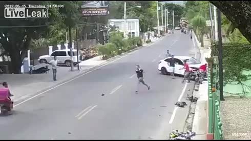 究竟是谁的过错? 摩托猛撞拐弯轿车