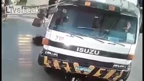 胆小慎点 摩托急刹摔车惨遭大货碾压