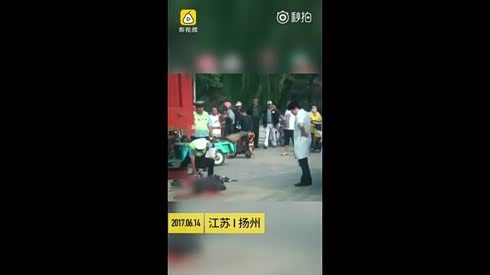 惨不忍睹 男子骑电瓶车遭碾压妻子哭晕