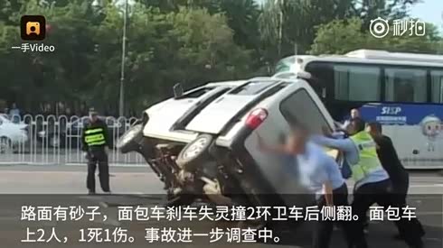 砂石车惹的祸 面包车失控撞翻两环卫车