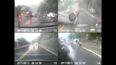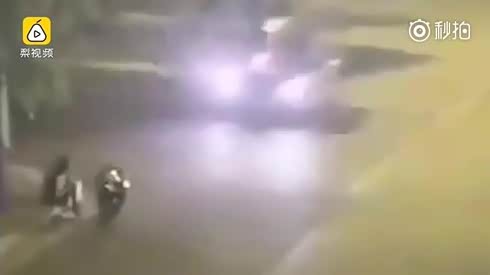 瞬间爆炸 摩托车高速撞上转弯出租车