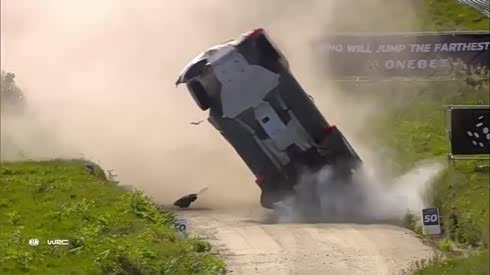 “倒栽葱式”摔车 WRC赛车飞车现意外