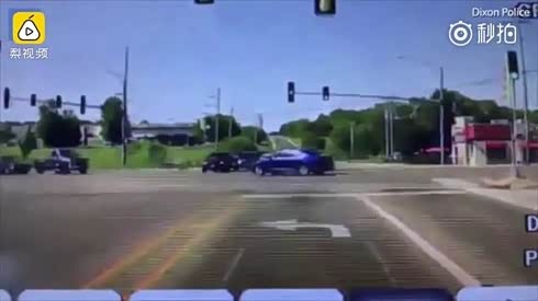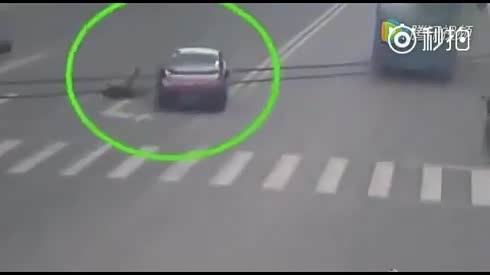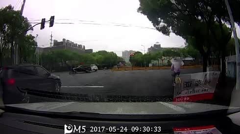 速度还很快 三轮车乱闯红灯惨被撞毁