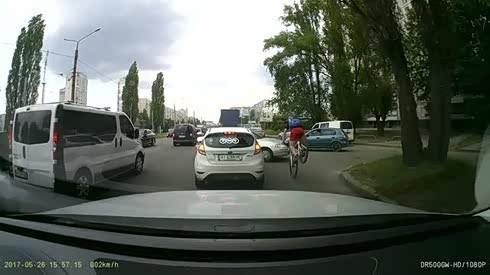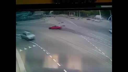 生死一瞬间 疾驰红色轿车撞飞骑车人