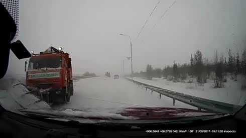心疼司机三秒 铲雪车失控猛撞摄像车