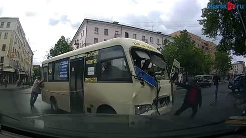 这是肿么了 小巴车失控司机被甩出车外